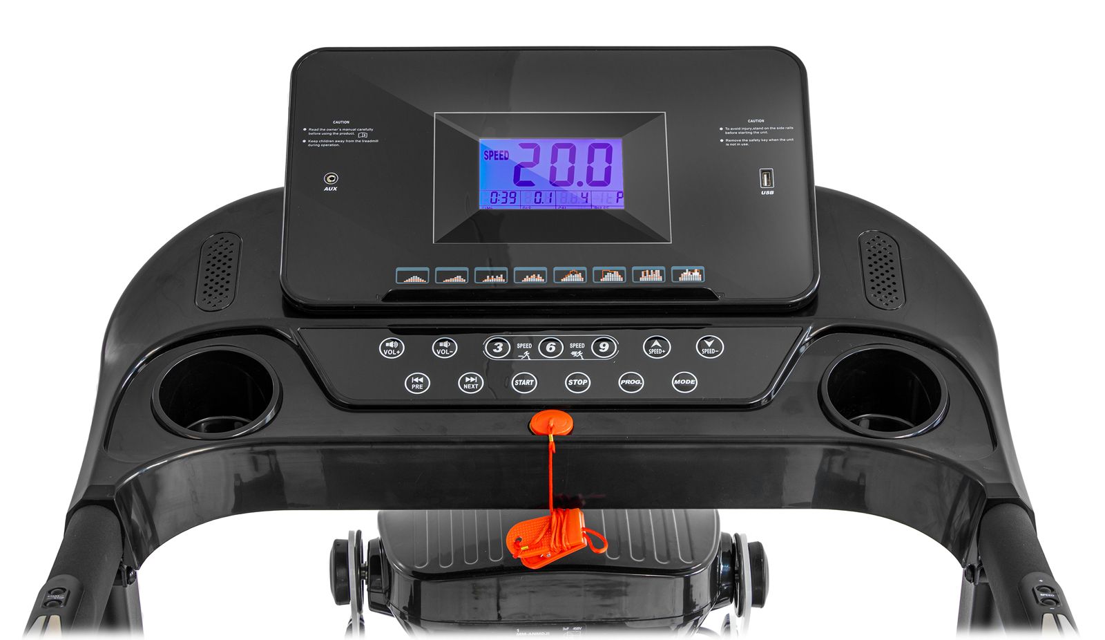✅DUŻY wyświetlacz LCD: czas, prędkość, dystans, kalorie, pulswejścia: USB, wejście AUX