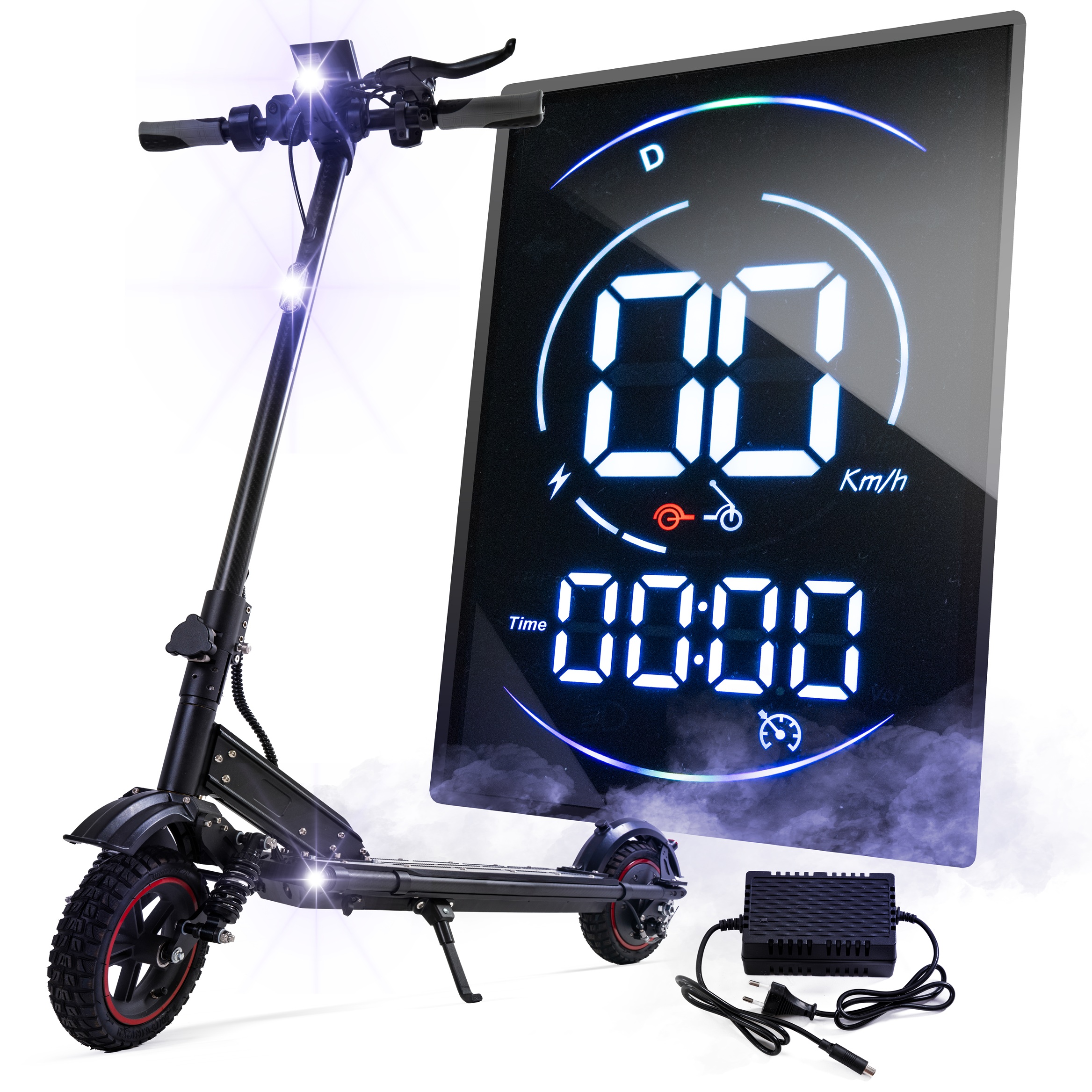 Pojazd posiada gumowe opony, a cała konstrukcja jest bardzo lekka dzięki zastosowanemu aluminium odpornego na warunki atmosferyczne materiału! W zestawie znajduje się ładowarka. Podest hulajnogi jest całkowicie antypoślizgowy! Wbudowania bateria o pojemności 7500 mAh daje zniewalające osiągi zasięgu, a jej udźwig wynosi aż 120 kg.