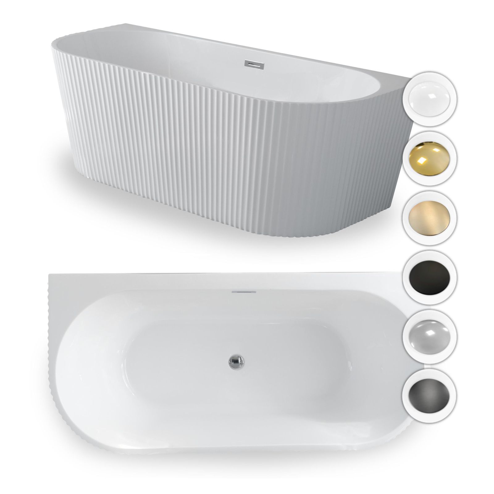 Wanna Pari 160 x 75 x 58 cm wolnostojąca przyścienna w prążki biała z przelewem