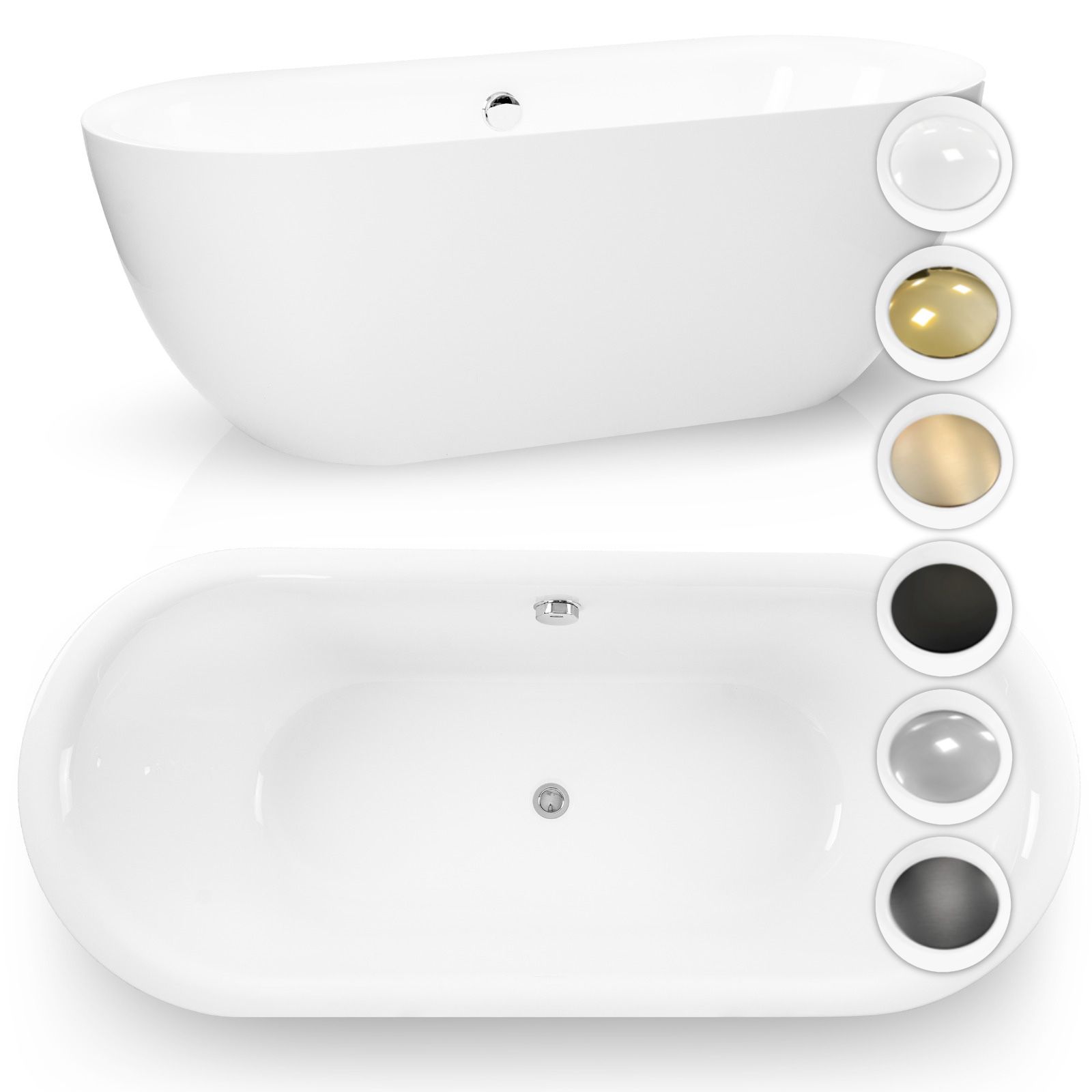 Wanna wolnostojąca 150 x 75 cm biała owalna akrylowa + syfon BARI