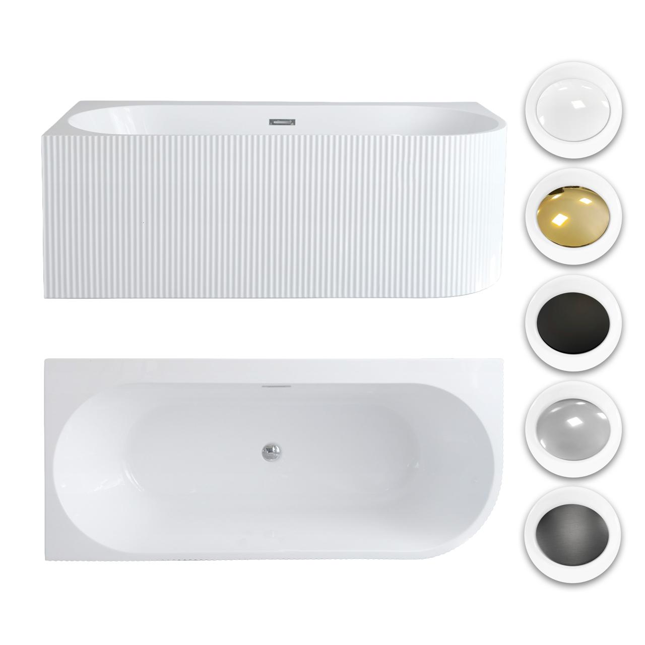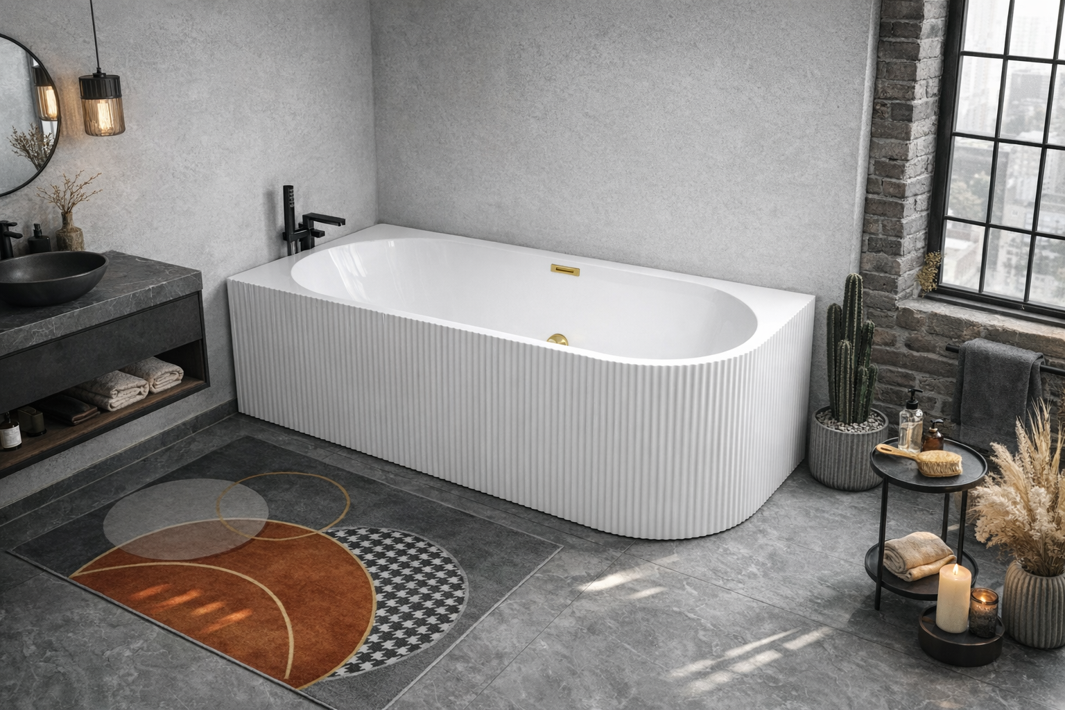 Wanna wolnostojąca przyścienna NAROŻNA PULA Lewa Prążkowana 160 x 75 x 58 cm biała system przelewowy