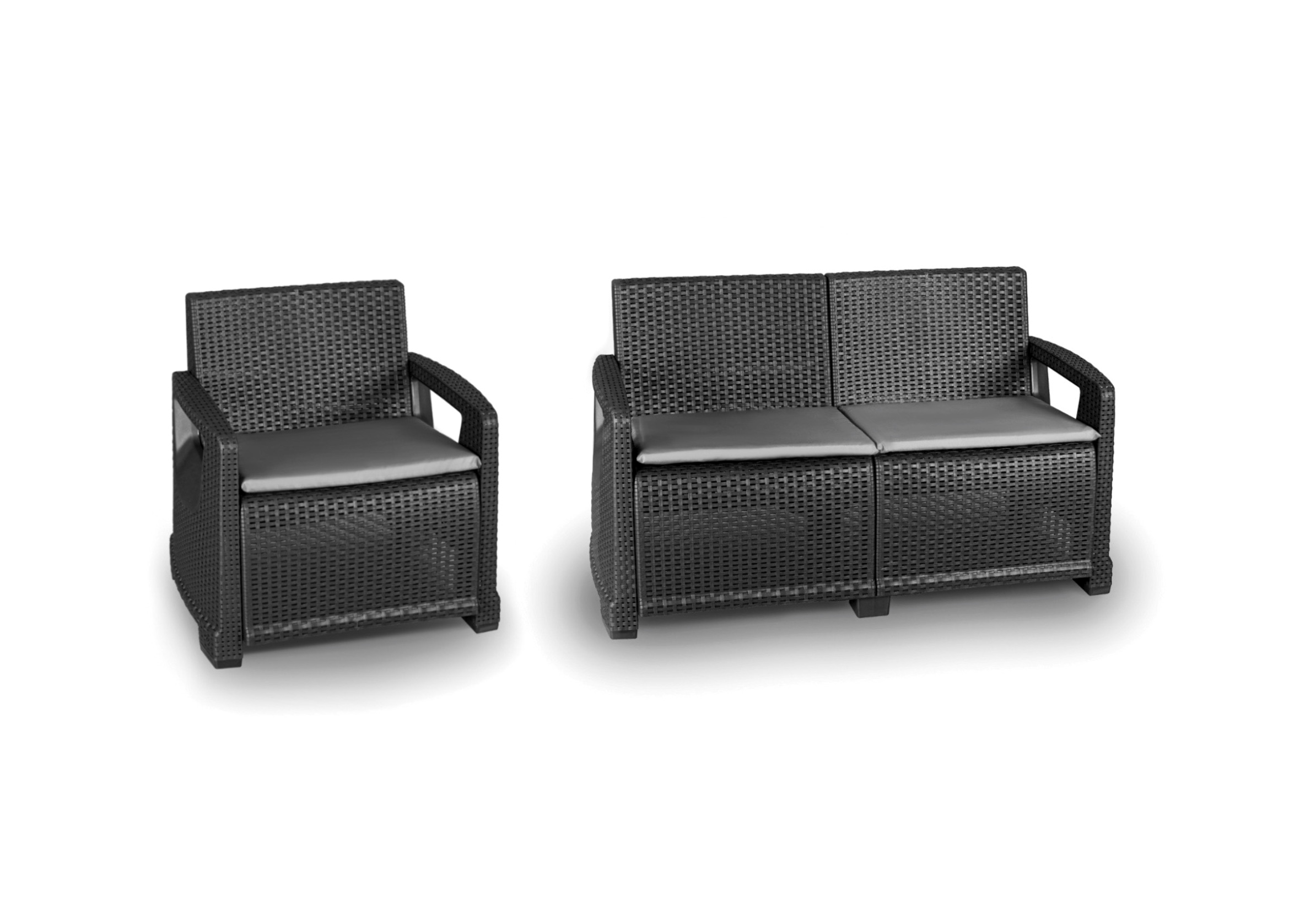 Aby zachować nieskazitelną trwałość materiałów, meble należy umieścić pod zadaszeniem. Zestaw antracytowy jest dostępny z poduszkami w kolorze jasnoszarym. Materiał poduszek jest łatwy w czyszczeniu i odporny na wilgoć po odpowiednim zaimpregnowaniu. Poduszki można obnażyć z poszwy. Uwaga, poduszki dekoracyjne (jaśki) są wyłącznie elementem aranżacji zdjęcia i nie są dołączonedo zestawu.